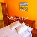 Casa Rural Refugio De Heda Villa, som ligger inom 2 km från Sierra de Gredos, har en solig uteplats med utsikt över bergen.